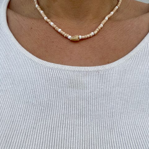 #perlekjede #smykker #skjell #bohosmykke #nordafrika #beige #blå #hvit #tisevennlig #gjenbruk #tisefinds #unikstil