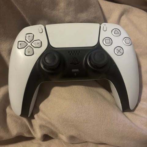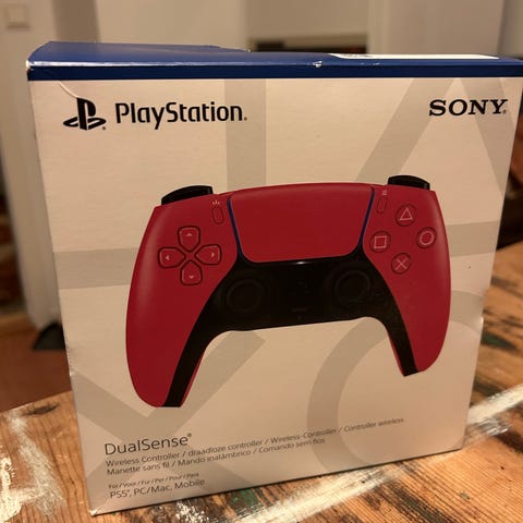 Sony DualSense trådløs kontroller i hvit og svart farge. Ble kjøpt fra power. Alt fungerer fint. Ingen stick drift problemer.
