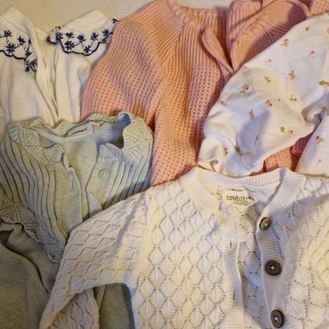 Selger en pen og praktisk klespakke i størrelse 56, brukt av ett barn født i mai. Klærne er pent brukt, godt tatt vare på, og har fortsatt mye igjen å bruke.