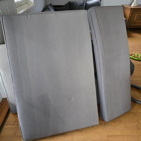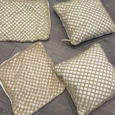 3 stk lys beige ryggputer til sofa gis bort mot henting. Fine å ha i f.eks Hemnes dagseng e.l.