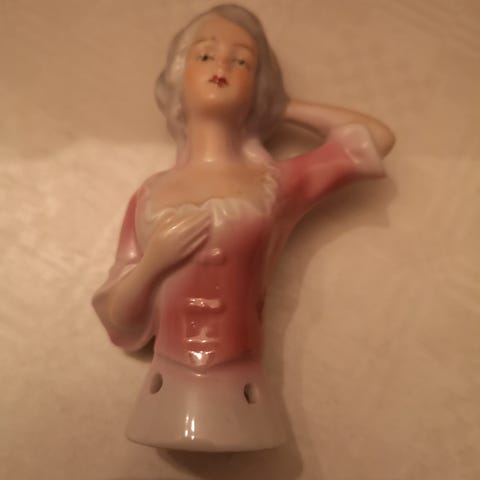 Figur av rokokko dame i porselen, havlvfdoll /nålepute