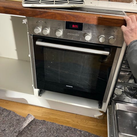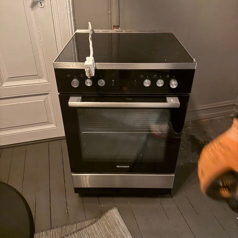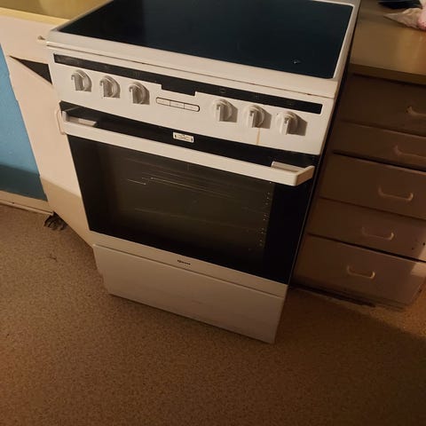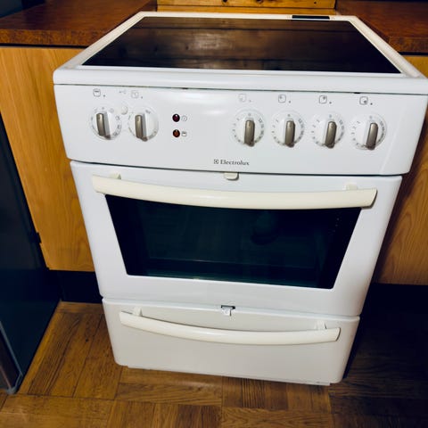 Siemens keramisk komfyr med stekeovn. Komfyren har keramisk kokeplate med flere kokeplater og ovnsdør med glass.