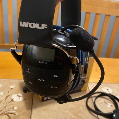 Wolf hørselvern med innebygd DAB-radio og bluetooth. Som ny, brukt en gang.