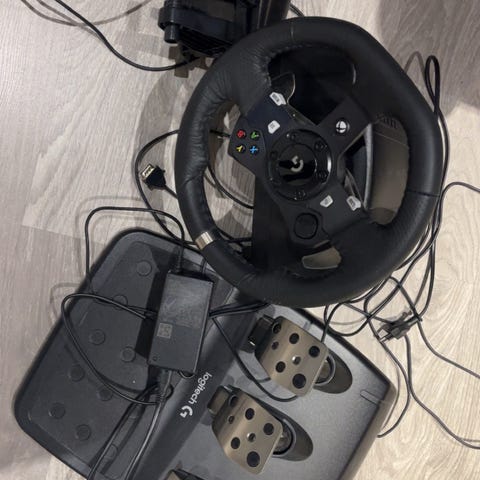 Brukt 2 ganger. Selges da jeg ikke har tid til å bruke det. Logitech G923 Racing Wheel og Pedaler, designet for Xbox og PC. Inkluderer ratt med flere knapper og pedaler for gass, brems og clutch. Materiale i lær og plast. Svart farge. Egnet for bilsimulering og racingspill.