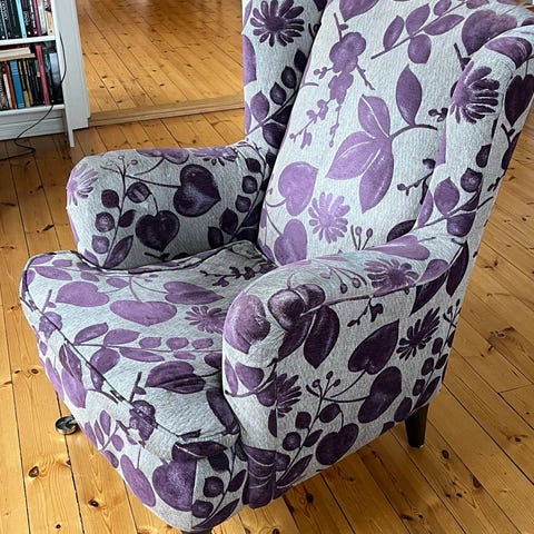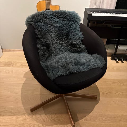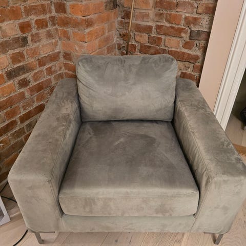 Fine å sitte i , må vaskes nok litt over men det ordner seg sikkert.