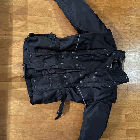 MC-klær sett bestående av jakke, bukse, hansker og støvler i svart farge. Jakke og bukse er laget med Drytex materiale som gir vannavstøtende egenskaper. Hanskene har beskyttelse på knoker, og støvlene er designet for motorsykkelbruk med forsterkede områder for sikkerhet og komfort.