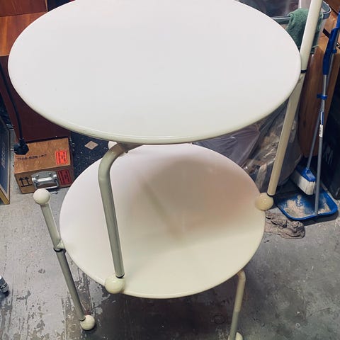 Kul vintage krakk i bambus/rotting med tilhørende beige pute . Tar du vekk puten, kan den brukes som en pidestall for planter eller annet.