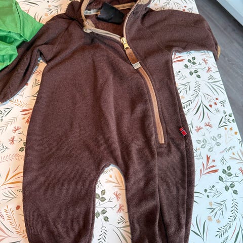 Passer for både gutter og jenter. Dressen har hette og knappelukking foran, med detaljer i kontrastfarge.