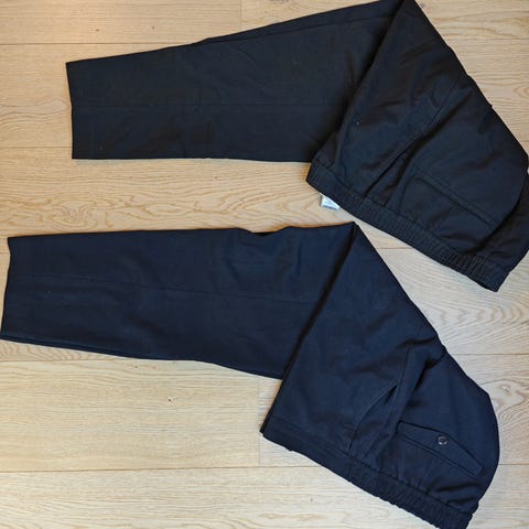 Svart bukse/chinos er størrelse W34L34, merke CBC Chinos.