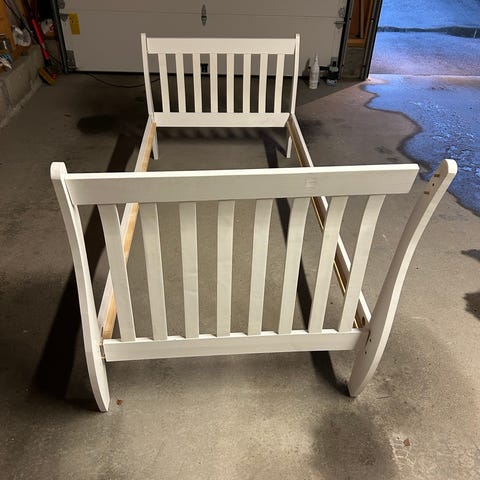 Pent brukt sprinkelseng gis bort, trenger en vask. Madrass medfølger. Må bort raskt, hvis ikke blir den kastet.
