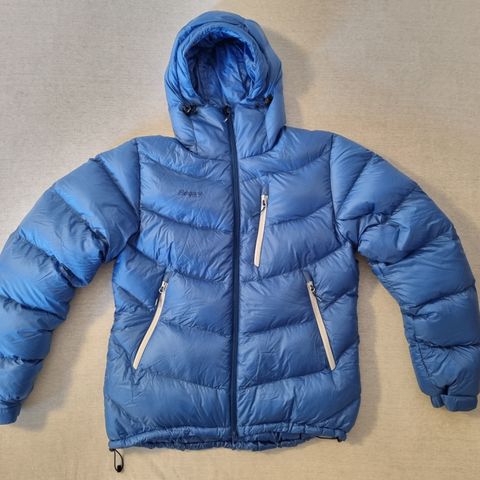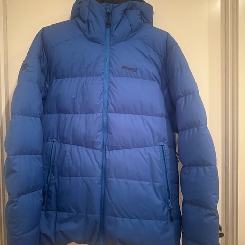 Selger Bergans 7600 Memurutind Down Jkt vinterjakke til herre da den ble litt for stor for meg. Den har en fin blå farge, og er i fin stand. Ingen rifter, merker eller hull. Alle glidelåser intakt. Jakken er laget av polyamid, god og varm dunjakke for vinterbruk.