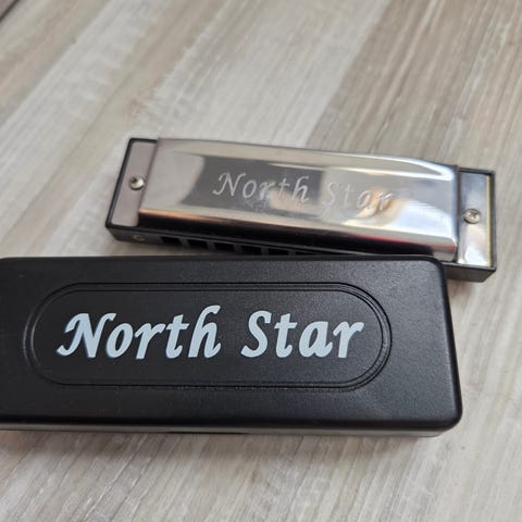 Ubrukt munnspill i solid plastboks. Kan sendes med posten.