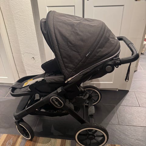 Vurderer å selge min Stokke barnevogn i beige farge. Barnevognen har justerbart håndtak og stor kalesje med netting for ventilasjon. Den har fire hjul og en praktisk handlekurv under setet. Passer for små barn og gir god komfort og sikkerhet under bruk. Spør hvis du lurer på noe