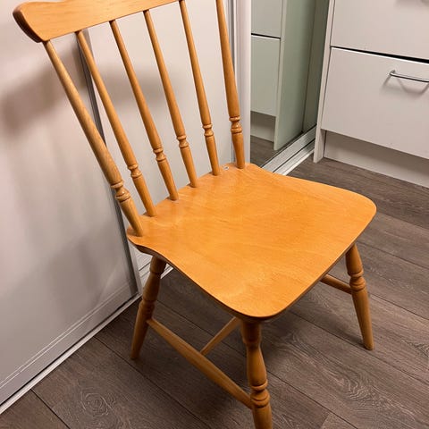 4 heltre kjøkkenstoler. Noen bruksmerker