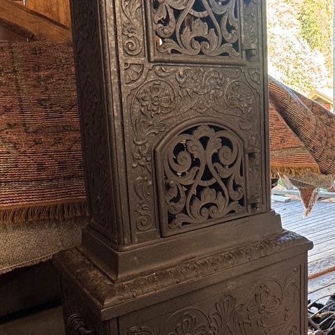 Antikk vedovn i støpejern