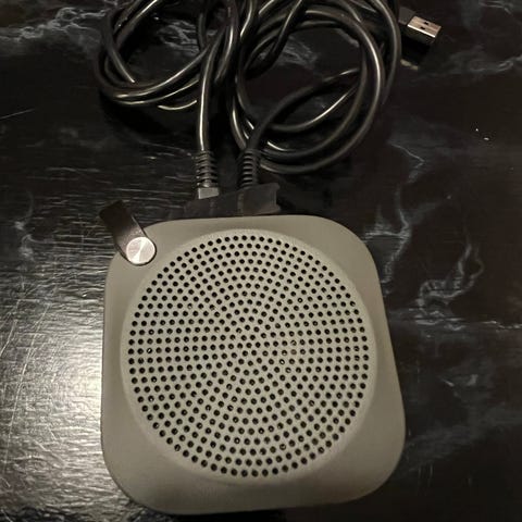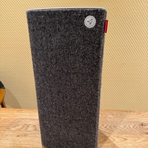 Libratone Live i grått ulltrekk selges. Tilkobling med AirPlay, DLNA og 3,5 mm minijack for analog eller optisk digital. App for valg av musikktype og plassering. Nypris var ca 5 500. Komplett med strømkabel.