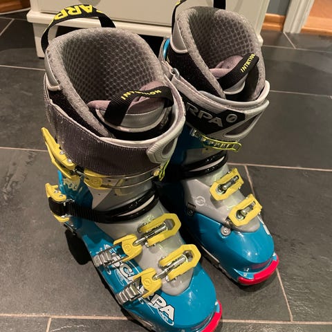 Selger denne populære toppturstøvel fra scarpa, Ginany, til en billig penge. Lett og allsidig sko. Den er godt brukt, men fremdeles mye sko igjen. Pris kan diskuteres. Str. 23