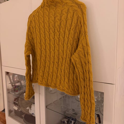 Hjemmestrikket Sweater No. 15 fra My favorite things knitwear. Strikket i Sandnes Sunday og tynn silk mohair. Selges fordi den bare blir liggende i skapet. Nesten ikke brukt. Fargen er lys gul.