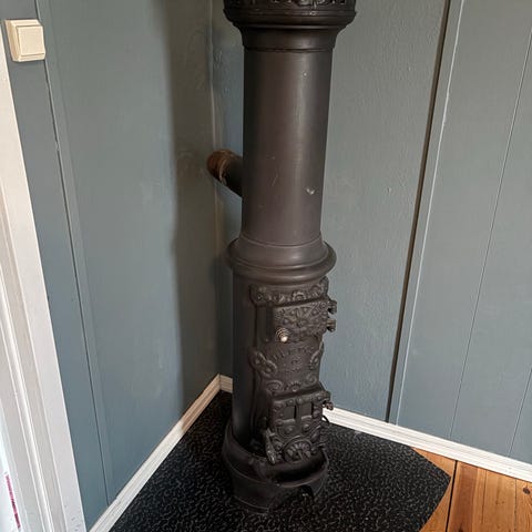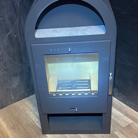 Ovnen er nyrestaurert, sandblåst og stensatt i brennkammer.