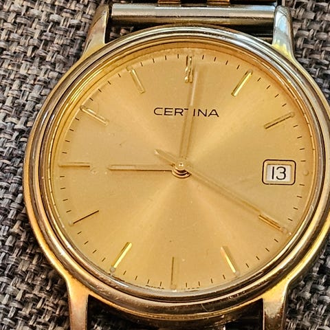 Vintage Mekanisk certina klokke 22mm med krone, trekkes opp og går fint følger med en vintage klokke boks, selges for 600