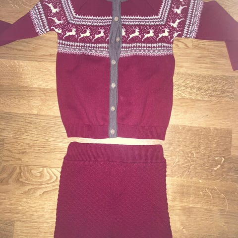 Julekjoler str 80. Den uten ermer er 86 og samme med genser og bukse er i 86. Sko er str 21