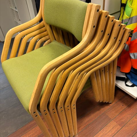 Selger 4 stk barkrakker, ca 20 år gamle, mangler merke, men mest trolig Siluett-serien, designet av Tore Wroldsen for Sandvik Møbler AS (basert på nettsøk)