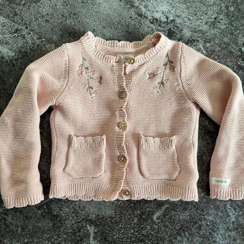 Newbie Hvit Bomull Cardigan for jente i størrelse 86. Laget av 100% bomull, med knappelukking foran og broderte blomsterdetaljer.