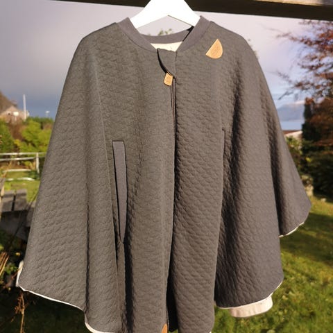 Nydelig poncho som brukes istedenfor tykke klær i bilstolen for bedre sikkerhet.