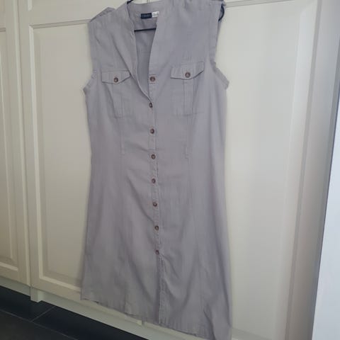Kjolen er antageligvis hjemmesydd. Det henger ikke en vaskelapp på. Materiale minner meg om silke. Står str 40 på, men den er mer en 36-38. Eg har større bryster, den var trang for meg i brystet.