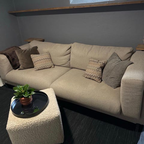 Eneste modifikasjon er at det er skudd skruer inn inder oppbevaring for å styrke, har ingenting å si på utseende eller funksjon. Mekanismen på sjeselongene kan henge seg opp men dette skjer sporadisk så trolig en vanlig feil med denne type sofa.