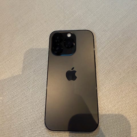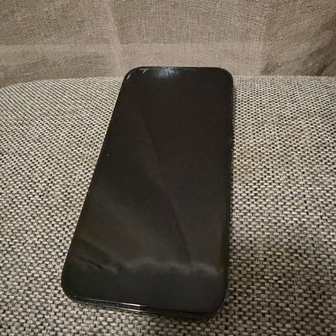 Apple iPhone 14 Pro mobiltelefon med 256 GB lagringskapasitet. Enheten har en svart farge og skjermen og baksiden er knust, som vist på bildene og mulig batteriet må byttes fungerer som den skal ellers.