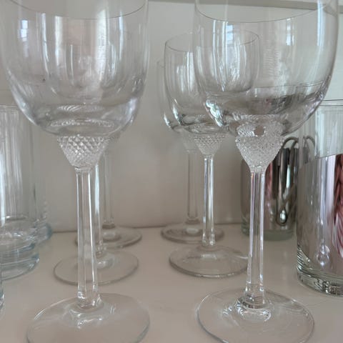 Glasset til vin er 20 cm høyt og er 9 cm i diameter - 150kr