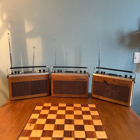 Arvet etter min far som var stor radioentusiast - dog ikke vært i bruk på 10+ år og stått i et skap (tørt og romtemperert). Antar det er sjanse for at elektronikken fremdeles fungerer, dette kan lett sjekkes hvis kjøper tar med skjøteledning for eldre kontakt (ikke jordet). Må hentes ved Heimdal. Kabinettet står lett tilgjengelig rett innenfor hovedinngang på bakkeplan med parkering.
