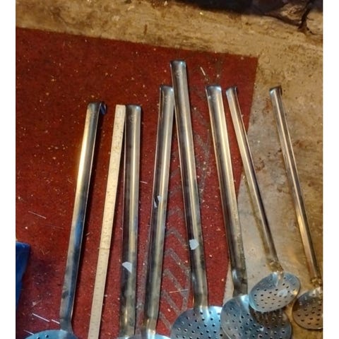 Jeg selger disse åtte delene samlet for 50 kr. Det er to eldre boksåpnere fra Sieger, en liten boksåpner fra Stabburet, en vinåpner, en nøtteknekker og tre kniver. Noe er slitt og noe er i god stand. Det meste er gammelt.