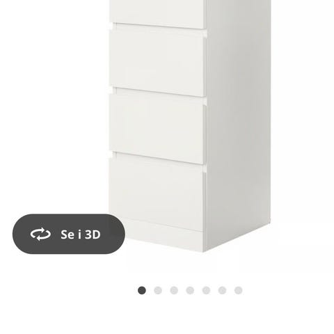 Selger en IKEA MALM kommode i hvit. Kommoden har 4 romslige skuffer med god oppbevaringsplass og passer perfekt til soverom, gang eller kontor. Kommoden er pent brukt og i god stand. Ingen synlige merker, kun litt støv som vises på bildet.