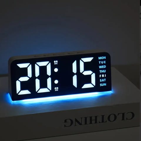 Stilig og Funksjonell LED Digital Vekkerklokke i wood med Lydkontroll – Justerbar Lysstyrke og 3 Alarminnstillinger.