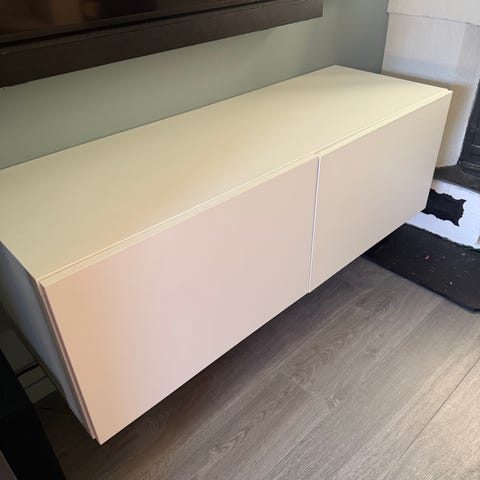 2 hvite IKEA Bestå TV-benker/skap. God oppbevaringsplass.