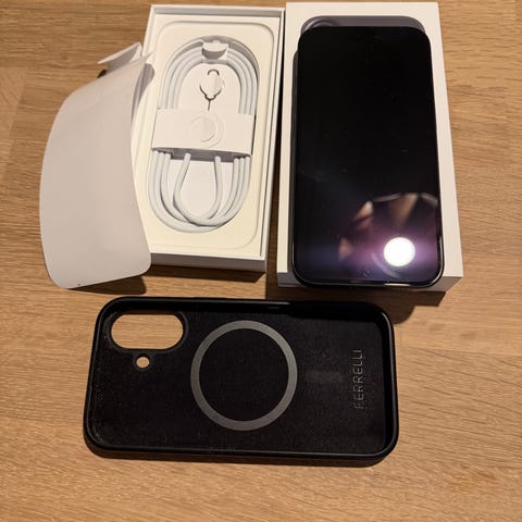 Apple iPhone 16 med 128 GB lagringskapasitet i fargen hvit. Mobiltelefon med moderne funksjoner og design.