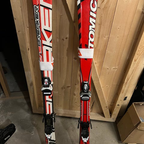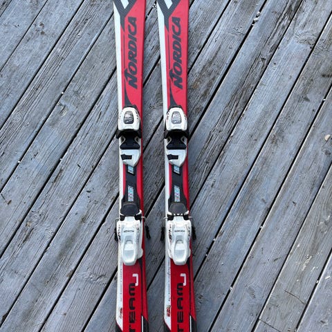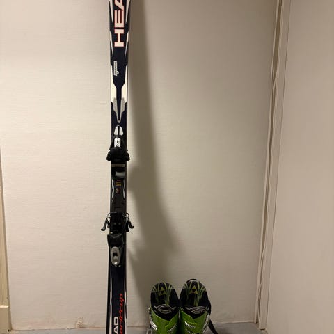 Skiene er godt brukt og trenger en runde med glider, men sålene har ingen store riper.