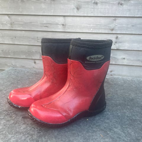 Pent brukte DockBoots i str. 29. Støvlene er varme og romslige og har vært mye brukt her. De ble kjøpt nye i 2024. Noe slitasje på mønsteret, men ingen hull eller mangler, så disse kan fortsatt brukes myyyye.