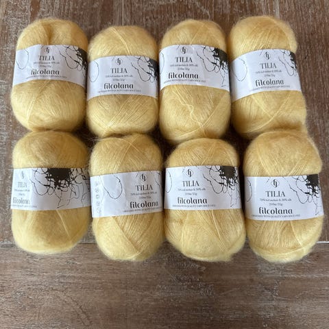 Filcolana Tilia totalt over 15 nøster (264 g + 125 g).