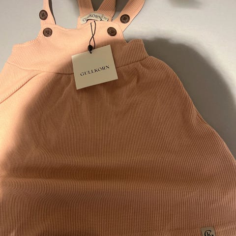 Supersøt kjole i rosa cordfløyel fra kvalitetsmerket Gullkorn Design, størrelse 98/104. Pent brukt av ett barn og fremstår som ny. Kjolen har trykknapper foran og to lommer – perfekt til både hverdags og penere anledninger.