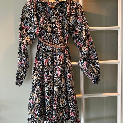 Innerkjolen er i tynn shiffon og har en hull på siden. Har ingen betydning for kjolens utseende , men selges derfor rimelig