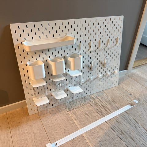 Bokser med lokk, kroker, klyper, 4 lange "hyller" , 1 pose og 2 annet oppheng.