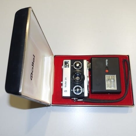 Selger en Rollei 35 S, et ikonisk kamera som er svært ettertraktet som samleobjekt. Kameraet er kjent et av verdens minste kameraer produsert på sin tid, med full manuell teknikk og fantastisk bildekvalitet grunnet svært skarpt objektiv. Modellen er designet av tyske Heinz Waaske og ble produsert på Rolleis fabrikk i Singapore. Den originale modellen ble lansert i 1966.