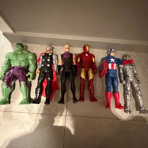 Selger helst samlet for oppgitt pris. Kan sende, men litt usikker på om Iron Man går i liten pakke. Kan prøve.