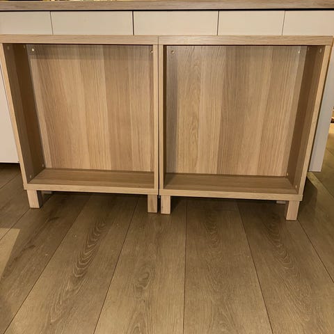Selve sjenken er skjev og ikke mulig å justere dørene slik at de blir rette, selger derfor kun dører og topp plate.