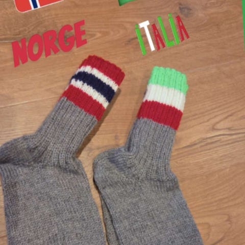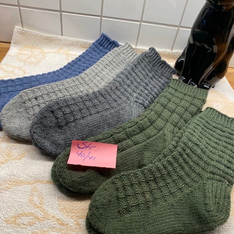 Strikket i 75 % ull, lange skaft. Selges kr 190. Blokket. Bruker kun posten ved sending.