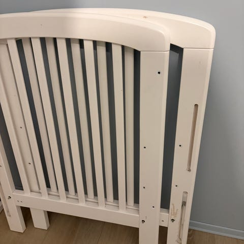 IKEA Sprinkelseng barneseng i hvit farge. Følger med en langside til som ikke er montert på bildet, men mangler skruene for å feste den. Gives bort mot snarlig avhenting.
