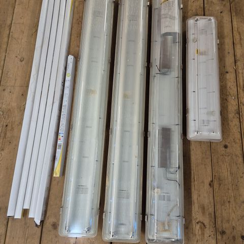 Ubrukt lysrørarmatur med to lysrør. Passer f.eks. fint i garasje eller bod.